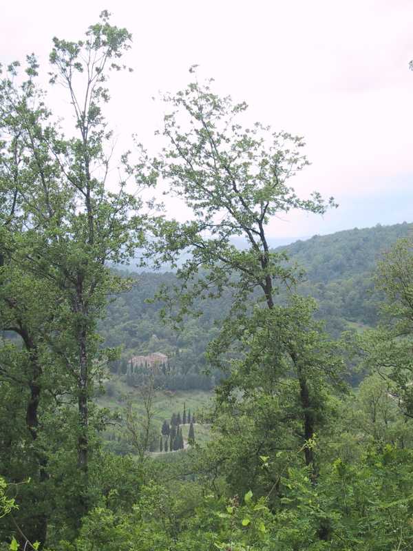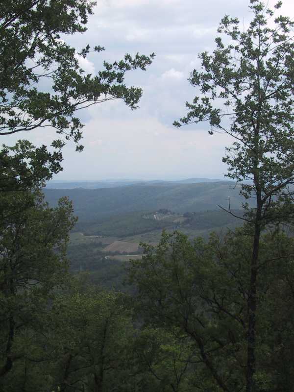 Von den Hügeln hat man immer wieder einen prächtigen Ausblick über die Landschaft des Chianti. Von Macchia und Wäldern bewachsene Hügel bieten einen abwechslungsreichen Anblick. Castellina in Chianti besuchten wir wegen Regens nicht, obwohl im Reiseführer als einer der nettesten Ort im Gebiet beschrieben. Dies wird beim nächsten Besuch in der Toskana nachgeholt. Stattdessen ging es gleich weiter nach Radda. Auf dem Weg dorthin merkten wir uns noch das nett gelegenes Restaurant »Ristorante La Cantoniera«, das wir dann bei der Rückfahrt heimsuchten.