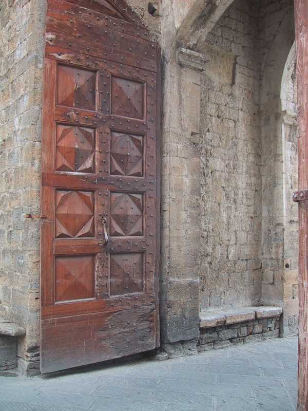 Voterra wird auch die Zwillingsstadt von San Giminiano genannt. Auch sie thront hoch auf einem Hügel und von weithin sichtbar. Durch eines der Stadttore tritt man durch die trutzige Stadtmauer und kommt in schöne Stadt.