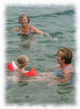 Nach den Anstrengungen des Mittagsmahles und nachdem es doch ein wenig schöner geworden ist, die Bora ein bisschen weniger stark geblasen hat und die Sonne etwas mehr zwischen den Wolken durchgeblinzelt hat, konnte man endlich das genießen, was man halt am Meer so macht: Schwimmen!