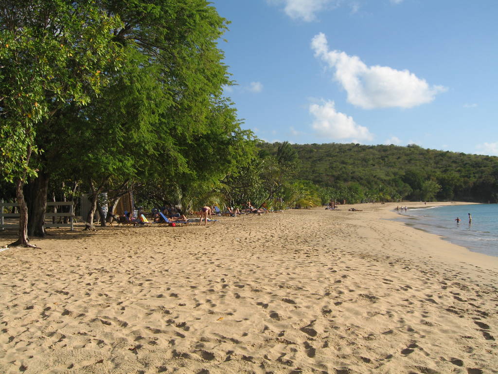Die Bucht Saline Bay empfängt die Segler mit einem langen Sandstrand. Gleich hinter dem Sandstrand liegt ein Salzsee, von dem die Bucht ihren Namen bekam. Vor der Bucht lag noch ein Kreuschiff. Die Gäste die Schiffes bevölkerten den Strand und auch den Ort, dem wir später einen Besuch abstatteten. Wir machten schließlich an einer Boje fest, wofür natürlich wieder kräftig kassiert wurde.
